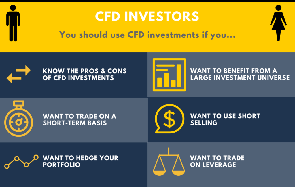 - You can short. It is a lot easier to “go short” using CFD trading – allowing you to bet that the price of a particular security will go down, which otherwise may be tricky or impossible for retail investors in most asset classes.