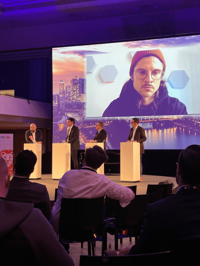 In the afternoon, it was hard to choose between the three parallel sessions. After a bit of an inner struggle, I decided to listen in on the session on cryptocurrencies first. One of the speakers, co-founder & CEO of coindex Kai H. Kuljurgis, is currently building the first regulated German platform for passive savings in DeFi/crypto coindex. He wants to make investments in cryptos available to everyone in a simple, transparent way. He pointed out that most crypto investors are inexperienced and young traders get overexcited easily. Another speaker said that volatility is not an excuse to criticize crypto.