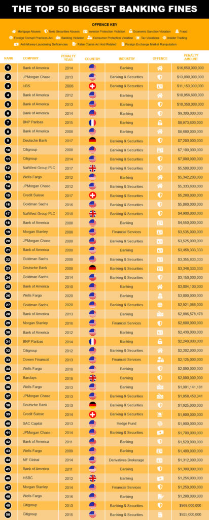 Investment fines – The top 50 biggest banking fines